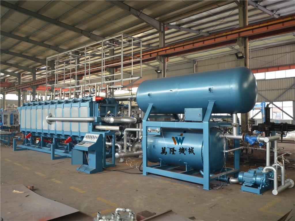 3. 該機(jī)采用國(guó)外先進(jìn)的EPS‘真空穿透加熱’和 本公司研發(fā)的‘脈動(dòng)加熱’成型工藝,穿透能力強(qiáng),板材成型快,粘接性好,蒸汽耗量低,保證產(chǎn)品內(nèi)外一致。冷卻采用真空冷卻技術(shù)大大縮短了成型周期,每塊泡沫板生產(chǎn)周期為4-6分鐘,能適應(yīng)生產(chǎn)6-40kg/m3的泡塑板材,板材厚度可達(dá)1米。